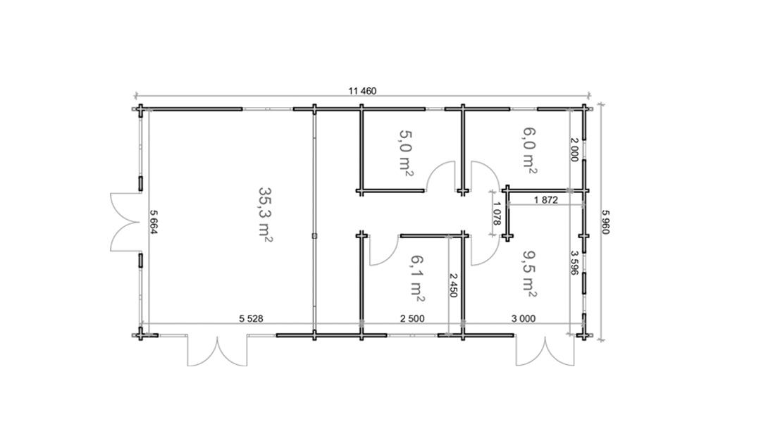 1 cuádruple con vidrio al 100% de 1.98×3 m, 2 dobles con vidrio al 100% de 1.98×1.6 m, 4 singles completos de madera de 1.98×0.85 m
